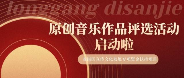 本次活动由龙岗区委宣传部指导,龙岗区文联主办、区音乐家协会承办,并由龙岗区宣传文化发展专项资金资助,评选活动将于2022年8月31日截止。