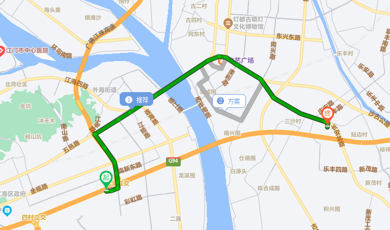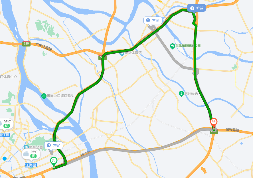地方道路分流路线:东海路—五邑路—江海五路—新兴大道西—岐江公路—同兴南路—岐江公路—长安北路