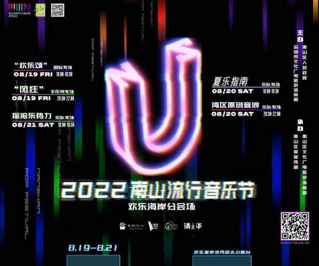 8月19日-21日,“欢乐颂”国际专场、“风狂”手风琴专场、“夏乐指南”乐队专场、“湾区原创音浪”乐队专场、“摇滚乐势力”乐队专场等五场线下精彩演出,将在欢乐海岸码头小舞台精彩上演。