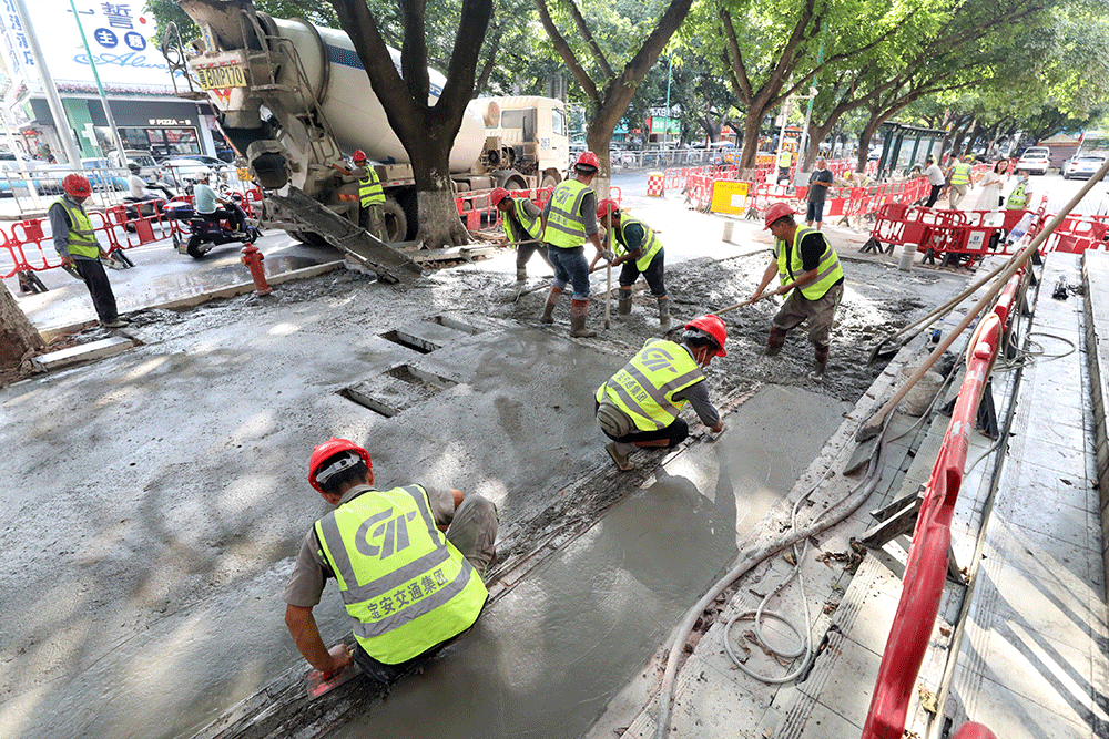 该项工程于7月中旬全部进场施工,因台风暴雨天气暂停的项目,目前也已全部恢复,宝安区校园周边道路微整治工作正在紧锣密鼓、有序推进中。