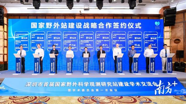 学术交流会现场还举行了国家野外站建设战略合作签约仪式。深圳生态环境监测中心站与清华大学深圳国际研究生院、北京大学深圳研究生院环境与能源学院、南方科技大学环境科学与工程学院等9家科研院所共同签署战略合作协议,会后还将与环境基准与风险评估国家重点实验室、中科院生态中心、中科院地理所等单位签约。重点围绕生物多样性保护、碳循环、生态格局与功能等领域进行战略合作,共同推动大湾区生物多样性保护和生态环境管理与监测工作。