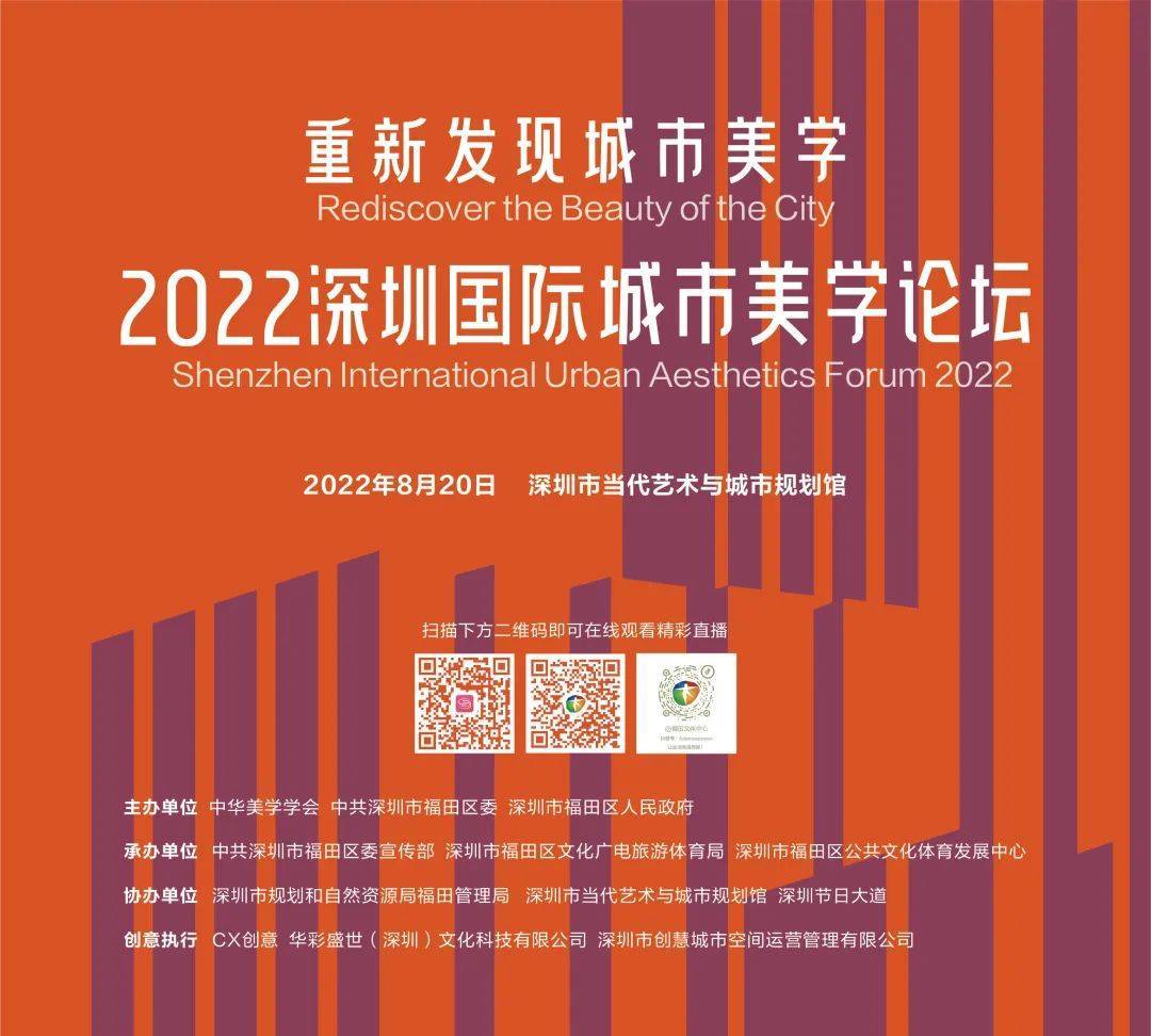 8月20日,由中华美学学会、中共深圳市福田区委、深圳市福田区人民政府主办的“2022深圳国际城市美学论坛”将在深圳市当代艺术与城市规划馆举行。