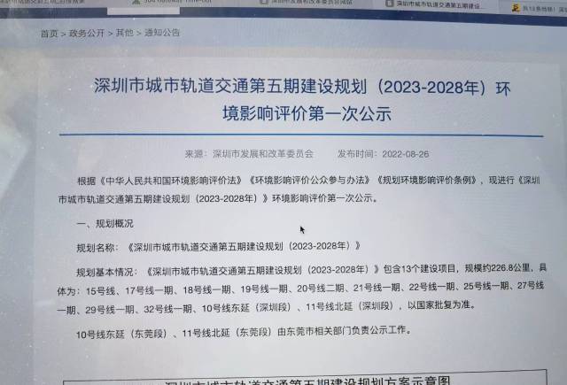 8月26日,深圳市发改委发布深圳市城市轨道交通第五期建设规划(2023-2028年)环境影响评价第一次公示,公布了《深圳市城市轨道交通第五期建设规划(2023-2028年)》。