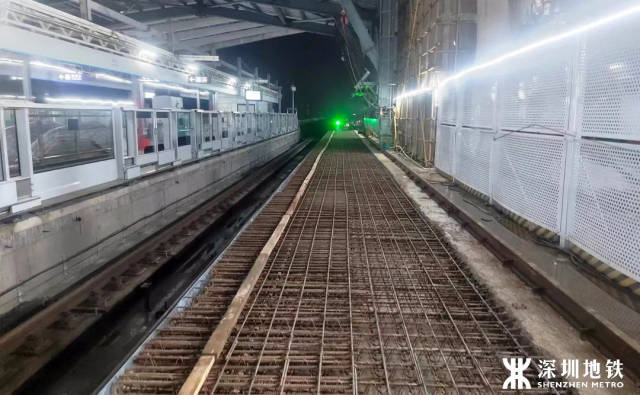 近日,地铁14号线大运枢纽顺利完成既有3号线新建侧式站台加宽、钢结构吊装及20跨楼承板安装工作,为侧式站台后续屏蔽门安装施工夯实了基础。