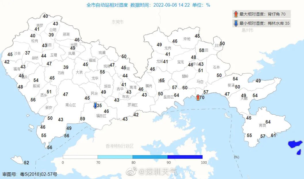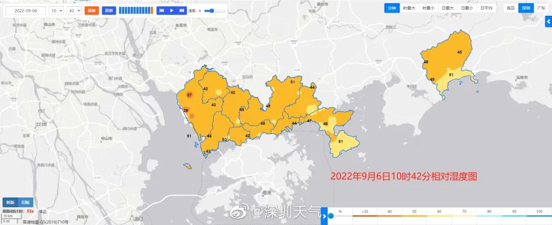 目前深圳市相对湿度普遍低于50%
