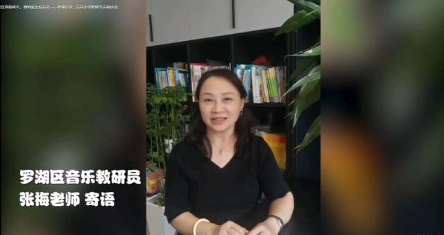 罗湖区音乐教研员张梅也通过视频表达了对孩子们中秋的祝福,希望他们在音乐的陪伴下,有朝气、有锐气、有正气、有才气,能茁壮成长,奏响最美好的童年乐章。