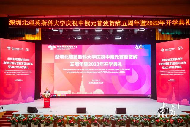 9月13日,深圳北理莫斯科大学庆祝中俄元首致贺辞五周年暨2022年开学典礼在礼堂举行。