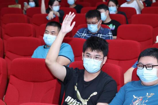 活动现场摆放了松岗街道全域党建共同体红色茅洲河知识竞赛的宣传展板和宝安区开展“学习强国”系列活动的重要成果。活动前后,观众们有序落座,排队离场。活动还特别设置了观众互动环节,观众参与积极性高,回答问题正确的观众还可获得精美的盲盒礼品。