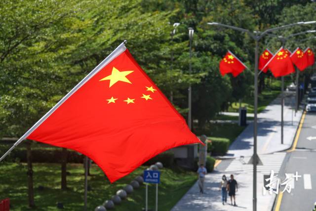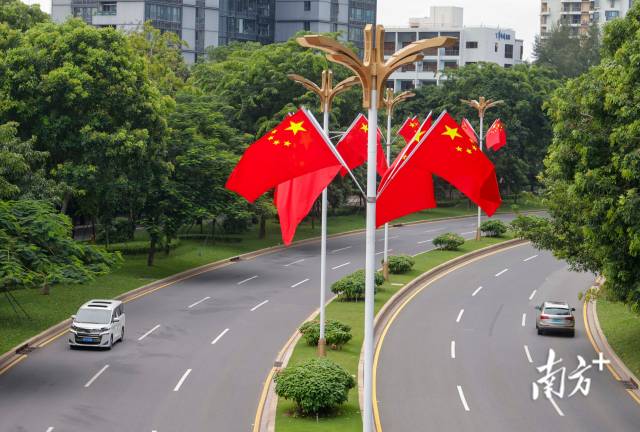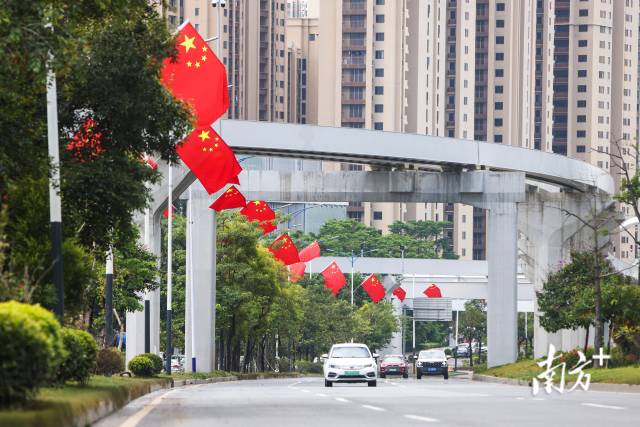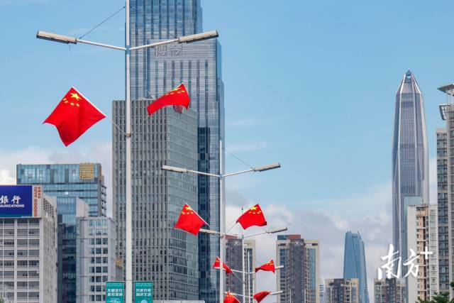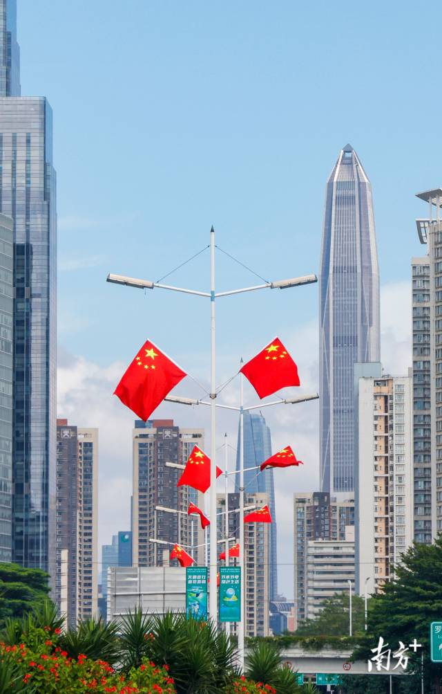 国庆期间,深圳街头一面面鲜艳的红旗轻舞飞扬,整座城市洋溢着一派欣欣向荣、朝气蓬勃的节日景象。