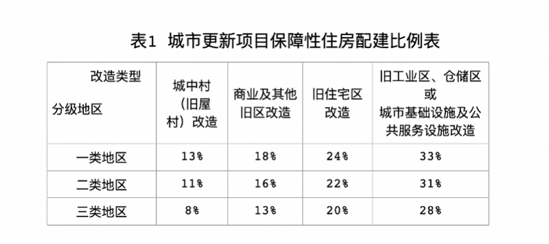 一是一类地区城中村(旧屋村)改造配建比例确定为13%。