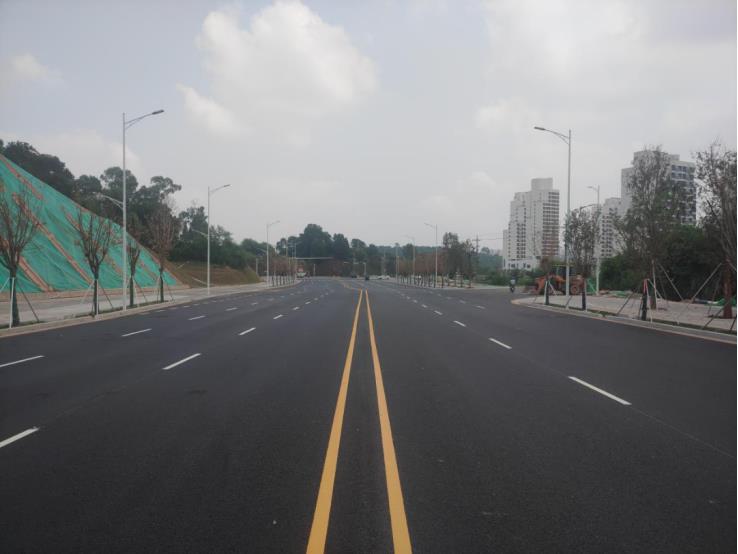 本次通车的高中园配套路段总长400米,双向6车道,道路红线宽度36米,设计车速50公里/小时,为城市主干路。