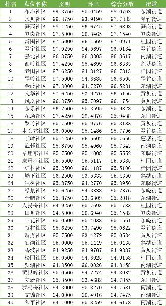 罗湖区9月综合文明指数出炉,各个社区和街道排名情况如何?你家社区排第几?