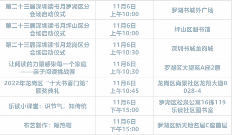 据介绍,深圳读书月自2000年创办以来,累计举办文化活动超10000项,累计吸引2.4亿人次参与,打造了深圳读书论坛、经典诗文朗诵会、年度十大好书等知名品牌活动,不断丰富市民群众的精神文化生活。2013年,深圳被联合国教科文组织授予“全球全民阅读典范城市”称号。