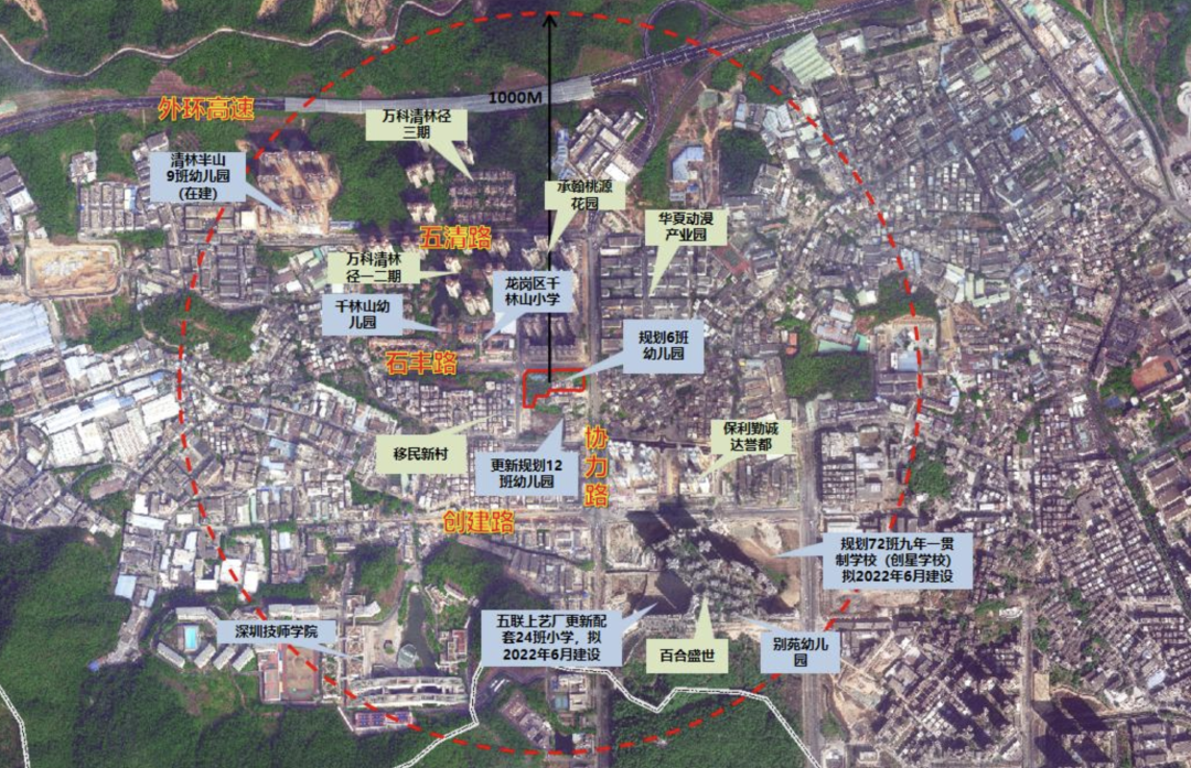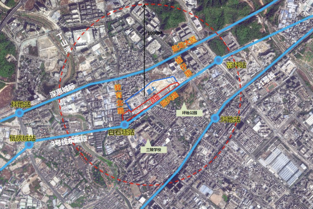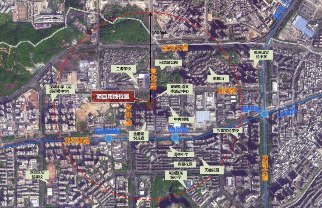 宗地与兰著学校仅一路之隔,与在建的16号线回龙铺直线距离也只有540米,周边多为住宅小区,居住氛围是本批次龙岗宅地中,位置较好的一宗。
