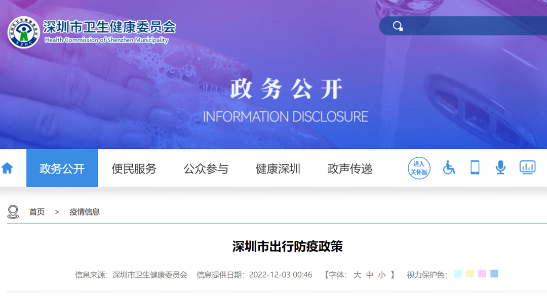 深圳卫健委页面截图【*本内容更新时间为12月3日00:46,疫情期间,政策将根据实际情况随时变动,请以最新情况为准(戳这里进入官网 ),深圳大件事君也将随时为大家及时更新。】