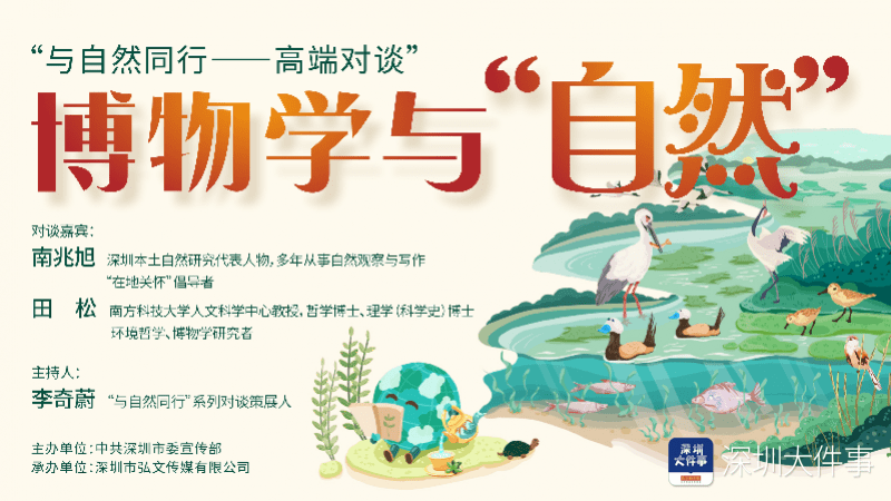 博物学与“自然”——“与自然同行”第四期活动将于12月4日下午3点在线上开展。届时,多年从事自然观察与写作,深圳本土自然研究代表人物南兆旭,将与南方科技大学人文科学中心教授,环境哲学、博物学研究者田松为公众带来关于“博物学”与“自然”的精彩分享。他们将围绕何谓“自然”?“博物学”如何认识“自然”?“博物学”与动物学、植物学有什么不同?如何重建人类与大自然间的情感关联?在城市,我们如何看见“自然”?如何讲述“自然深圳”?当博物学家谈论“自然”时,他们在谈论什么?等问题展开热烈探讨。
