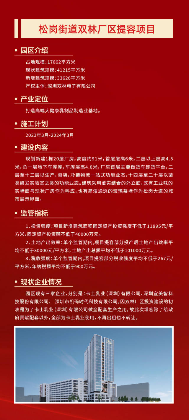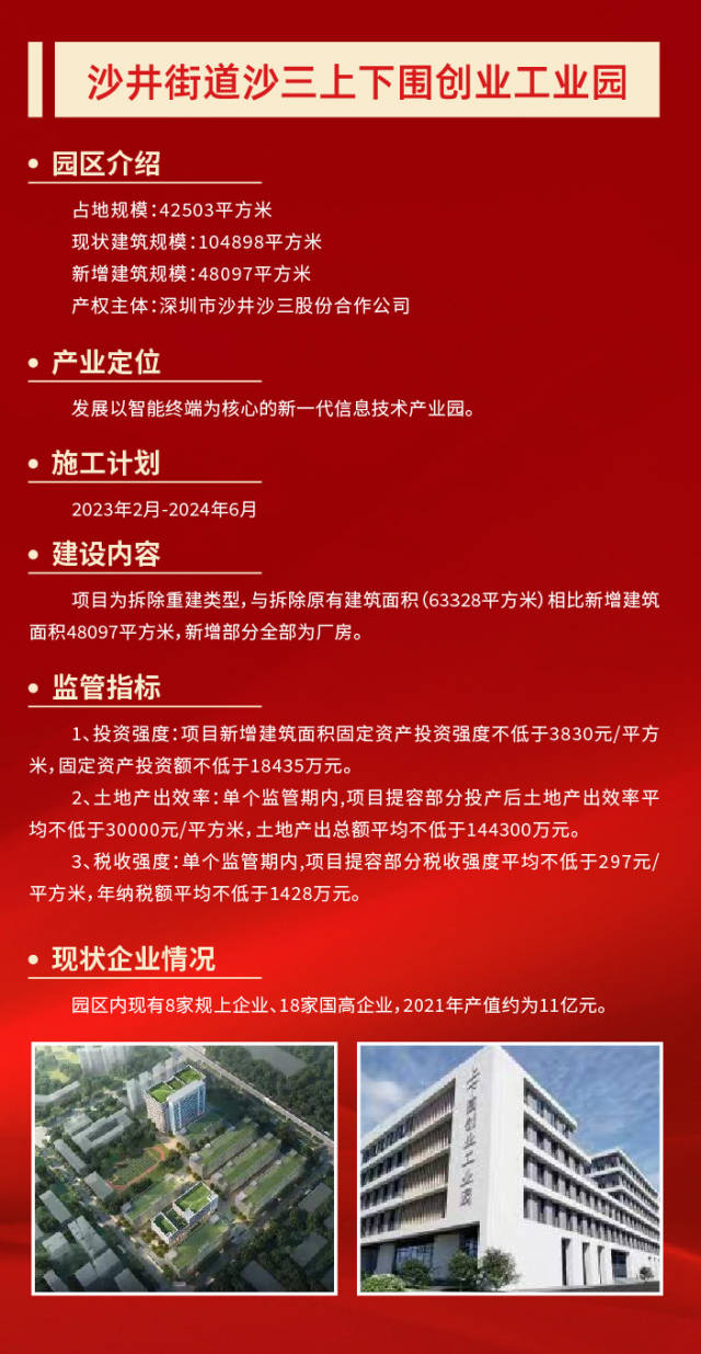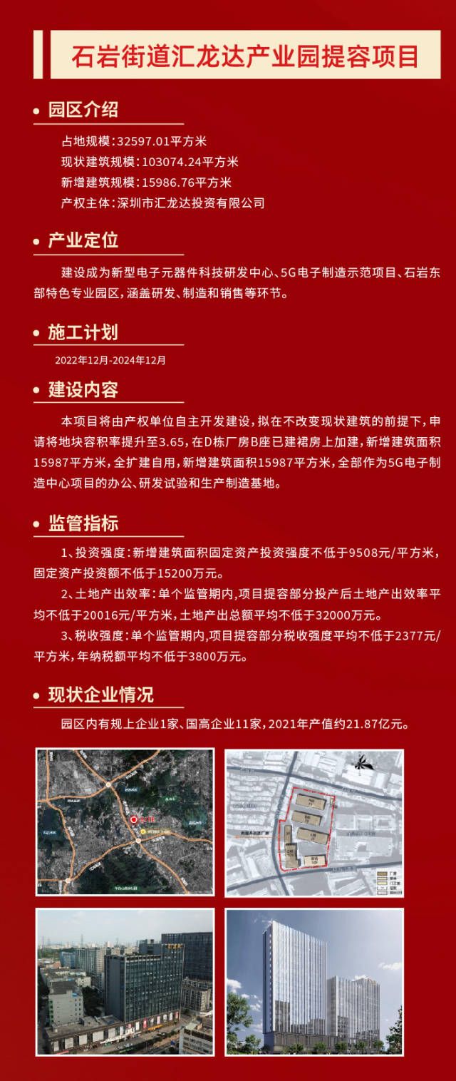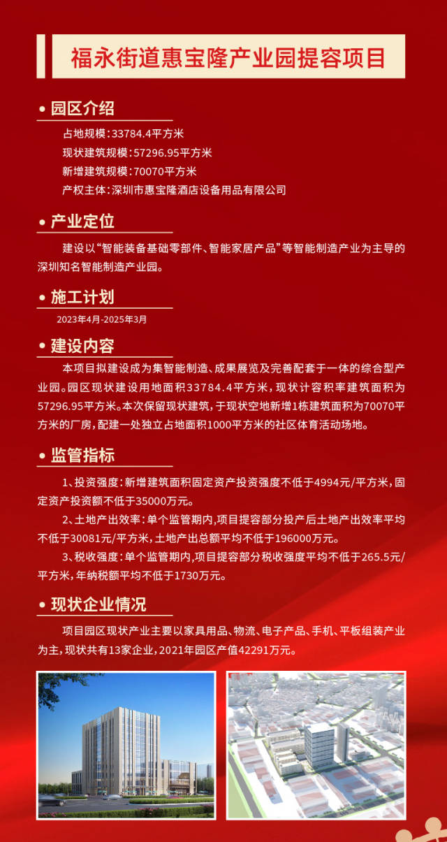 当天的开工奠基仪式上,深圳润恒集团有限公司董事长赖汉宣透露,园区将通过提高容积率,盘活现有土地资源,利用厂区空地新建一栋产业用房和一栋配套宿舍,总投资额约5.6亿元,预计2025年5月建成投产。
