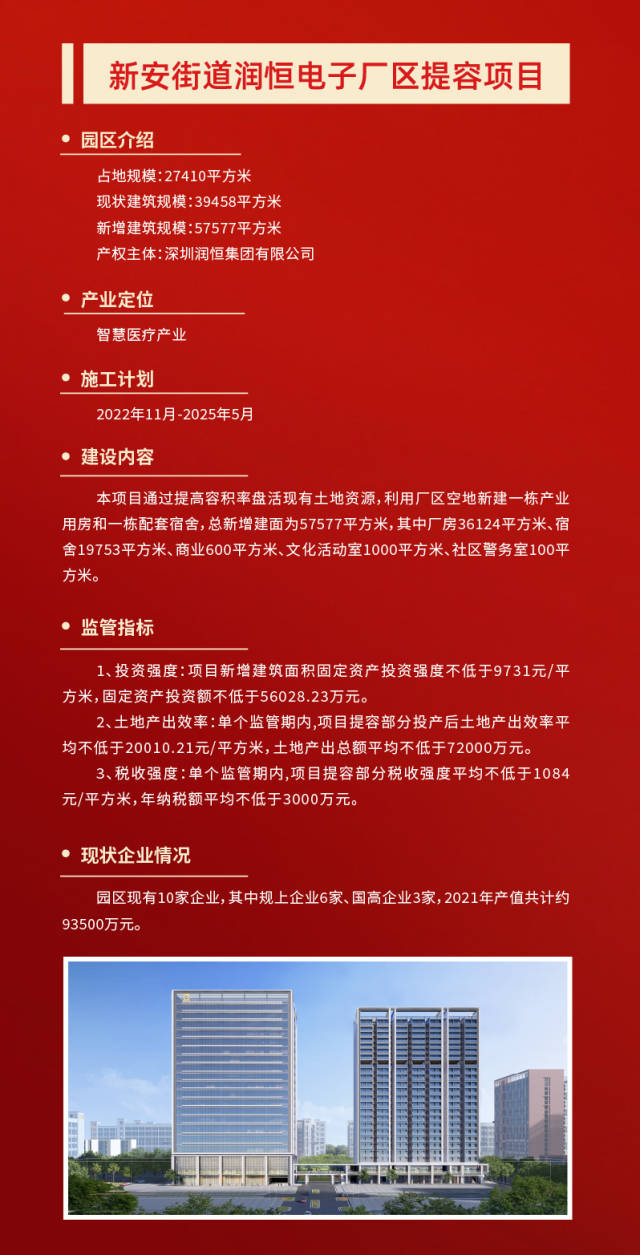 不止是润恒智慧医疗产业园,今年宝安在全区筛选了50个产业园区作为提质增效试点项目。项目完成后,可新增产业空间347万平方米,优化产业空间207万平方米,预计总投资309亿元。