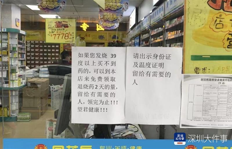 据药店店长朱碧珍介绍,赠药告示是他们18日张贴的,“因为这些天很多人发烧都买不到药,我们店里正好有一些存货,我就跟另一位同事商量把这些药送给有需要的人”。