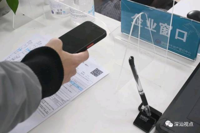 与张先生一同前来的,还有深汕绿地中心的签约专员李聪,从今年11月开始,他都会陪同业主前来办理不动产登记。他告诉记者,以前的办理流程是先到窗口打印无房证明,再跑一次银行缴登记费。现在,窗口会打印好凭证,业主直接扫描凭证上二维码就可以支付登记费,少了银行缴费的中间环节,大大缩短了办理时间。