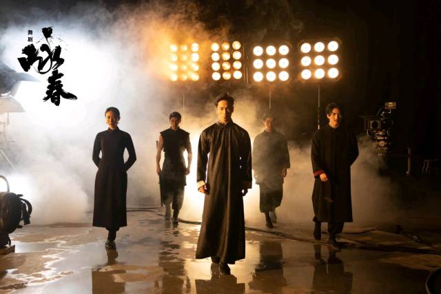 舞剧以一深圳剧组拍摄电影《咏春》为引,拉开全剧大幕。电影里的“叶师父”远赴他乡,怀抱“咏春堂”牌匾踏入群雄林立的武馆街,只为开咏春的一扇门;舞台上的片场中,剧组众人同样怀抱梦想奔赴山海,只为追寻心中那一束光……