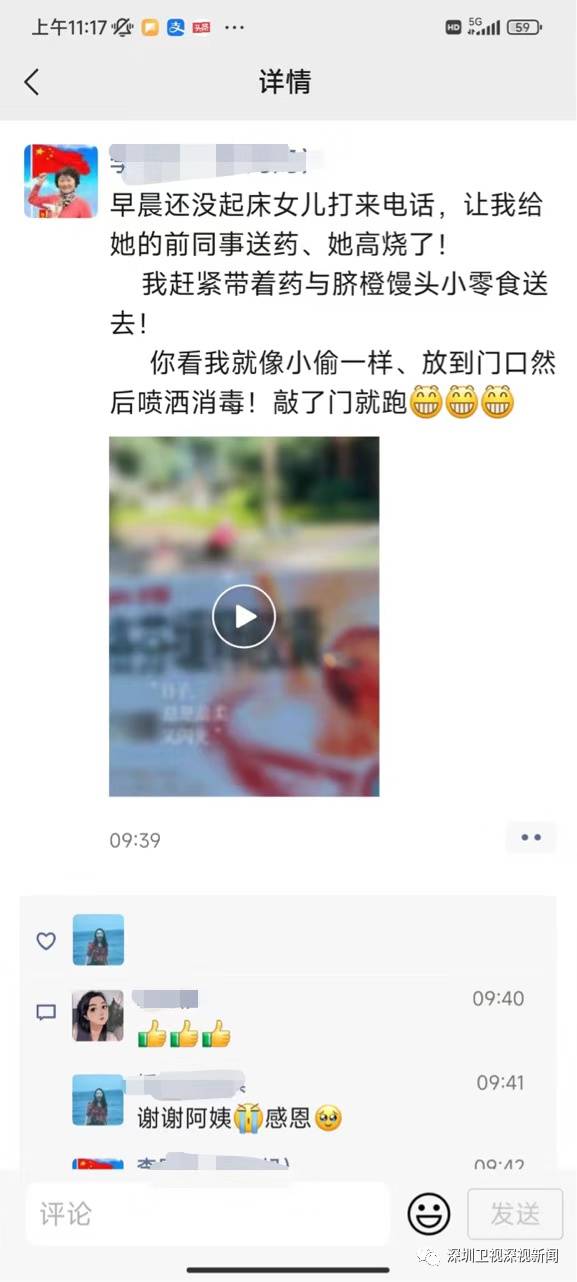 12月20日一早,家住坂田的吴女士持续高烧不退,在朋友圈发布了求药信息,很快她就收到了来自邻居送来的关爱。