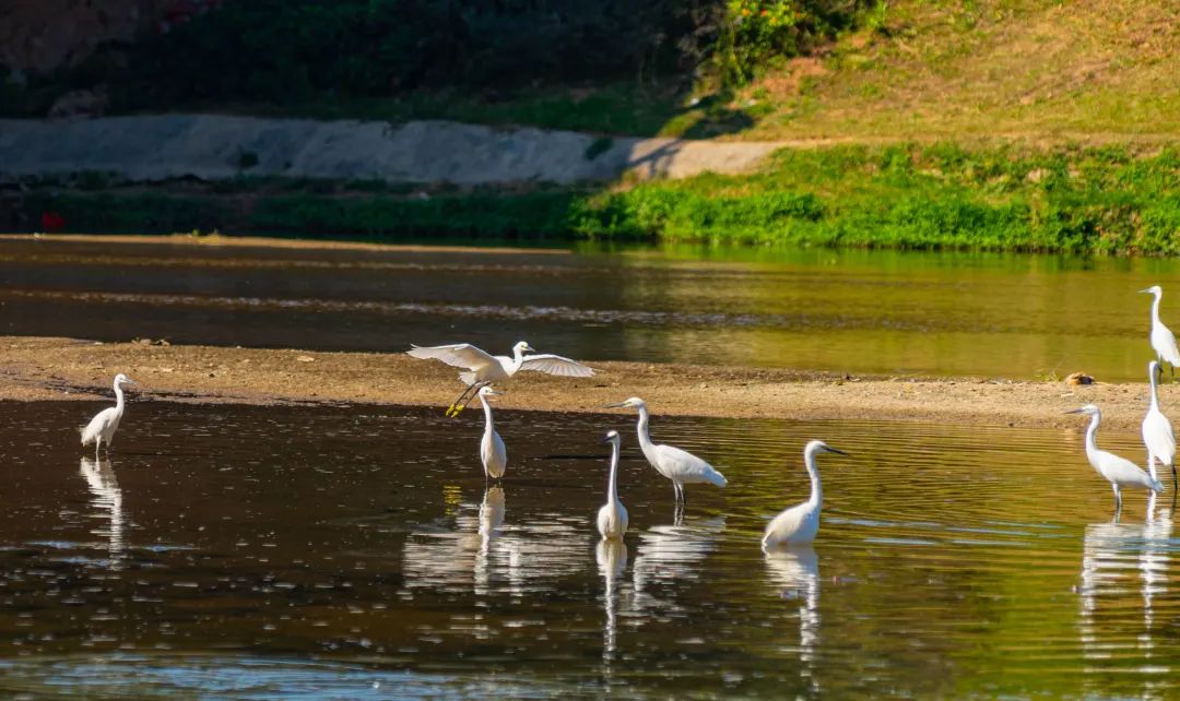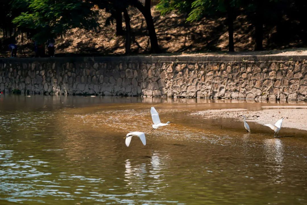 从左至右依次为:黑头鹎、池鹭、白鹡鸰