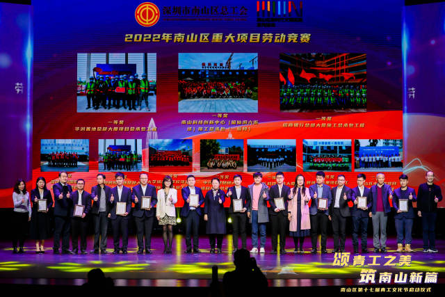 南山区“十大优秀青工”评选活动自2007年开办至今,已开展了十七届评选活动,受到广大青工的一致好评。同时,南山区总工会还联合区人力资源局、区住房和建设局、区建筑工务等单位举办了2022年南山区重大项目劳动竞赛,主要面向南山重大项目开展项目管理评比竞赛,在广大建设单位和建设者迅速掀起竞赛热潮,竞赛过程中涌现出一大批技术精湛、作风过硬的劳动之星,高质量、高水平地推进重大项目开展。出席活动的市、区领导为2022年度南山区“十大优秀青工”和2022年南山区重大项目劳动竞赛获奖单位颁了奖。