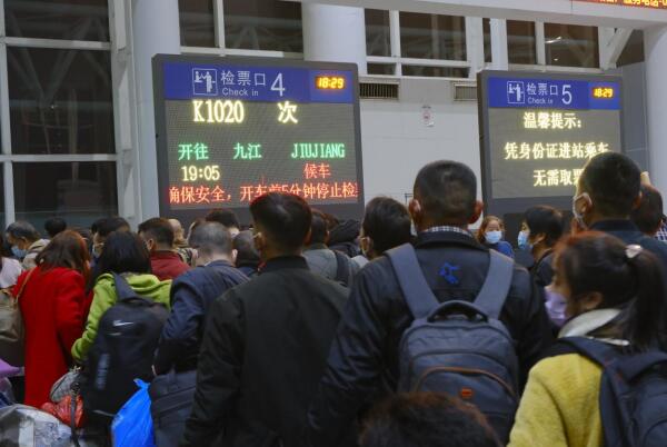 1月11日19点05分,深圳铁路首班春运外来务工人员团体专列K1020次列车从深圳东站出发,开往江西九江。