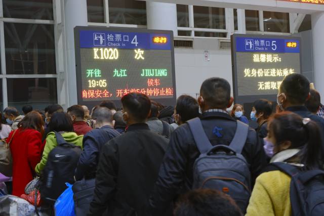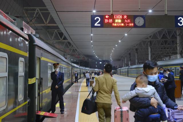 1月11日,兔年春节进入倒计时,深圳铁路首班春运外来务工人员团体专列K1020次列车将于19:05分从深圳东站出发,开往江西九江。其中,来自深圳市江西商会的130余位外来务工人员在车站工作人员引导下即将坐上回家的列车。