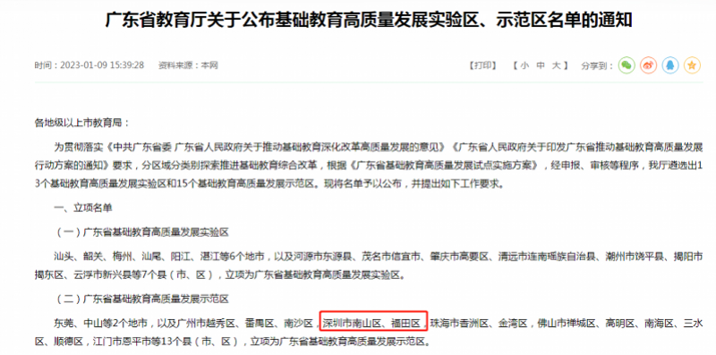 为发挥示范引领作用,南山区特制定“广东省基础教育高质量发展示范区”行动方案(2023—2025年)(以下简称“行动方案”)。行动方案的具体目标包括——