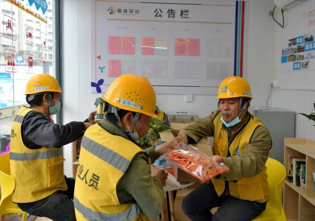 龙岗区总工会、建筑行业工会联合会等部门高度重视对建筑工人的关心关爱,联合龙岗辖区内建筑工地、建设单位、施工企业,通过打造暖蜂驿站、“党建+”活动室,让一线建筑工人们感受到家般的温暖。去年12月底,龙岗区建筑行业工会联合会、建筑工务署等部门联合中建八局南方公司、中建八局深圳科创发展公司在坂田街道文体中心项目工地,打造龙岗区首个“暖蜂驿站+党建活动室”。
