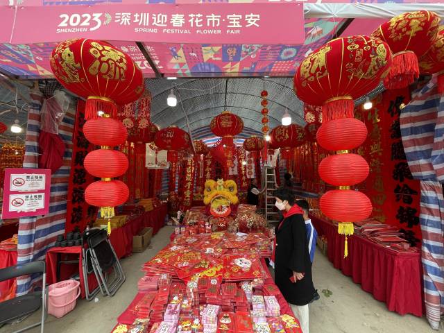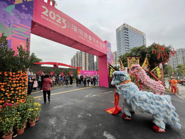 辞旧迎新,花开“圳”好。1月15日,2023年深圳迎春花市宝安区分会场正式开门迎客,现场锣鼓喧天、醒狮舞动,一派喜气洋洋的节日氛围。走进花市,红红火火的春联福字、争奇斗艳的年花年桔,处处洋溢着宝安人熟悉的年味儿。