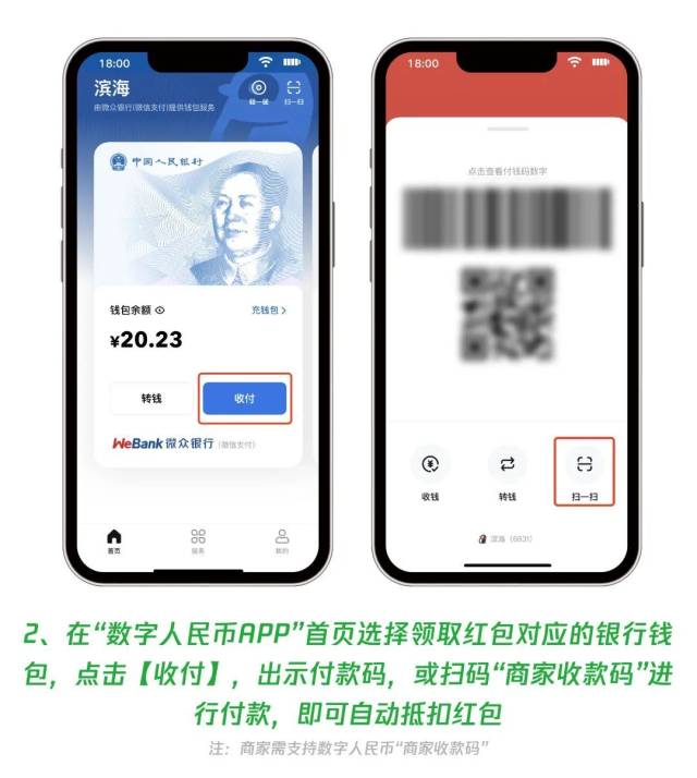 在使用数字人民币App消费时,将优先使用数字人民币红包,若交易金额超过红包金额、红包金额不足支付,请在数字人民币App内先充值后再消费。