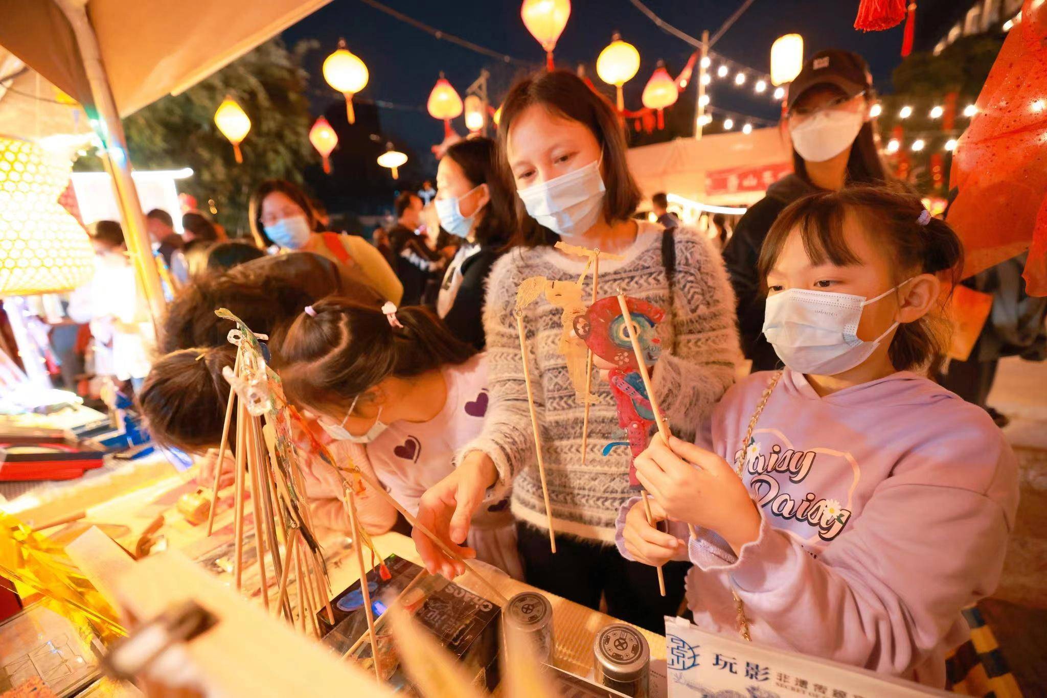市民朋友们可以在庙会上尽情享受元宵的乐趣,品尝圆滚滚的煎堆,感受传统的家乡味道;进行围炉煮茶,感受忙碌生活的些许惬意;也可以与家人朋友享受手工艺制作的快乐,体验传统灯笼的现场制作,传承自幼而起的非遗文化,体验深深的文化传承。