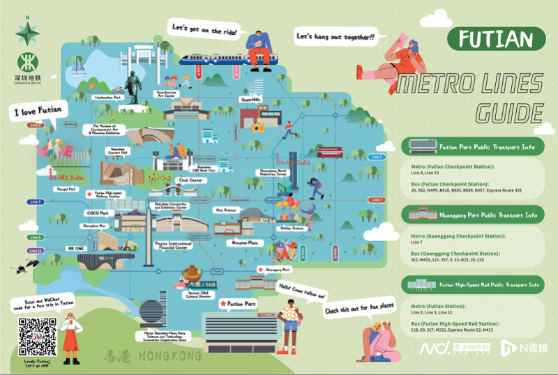 随着深港口岸的恢复开放,深港往来变得更加便利,福田也将成为众多港澳人士旅游、生活、工作之地。近期,福田区特别设计印制了繁体中文、英文版的福田地铁沿线游览图及寻宝攻略宣传折页,向来深旅客推荐福田商圈、文旅打卡点,并提供福田高铁站、福田口岸、皇岗口岸交通出行信息。有了它,就能一键解锁福田吃喝玩乐好去处,让你玩转福田打卡不迷路!