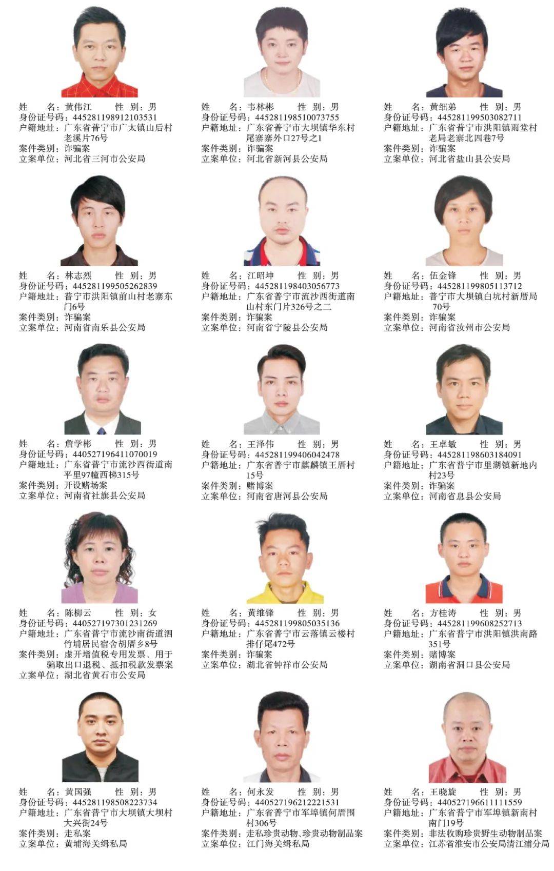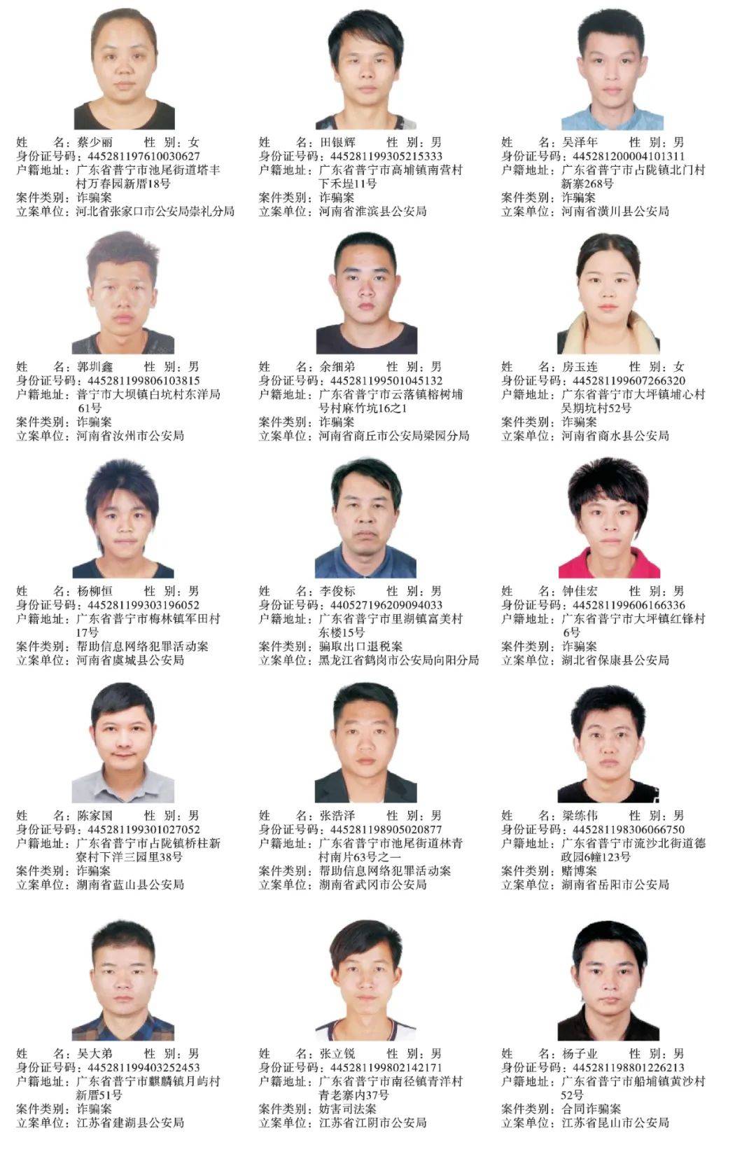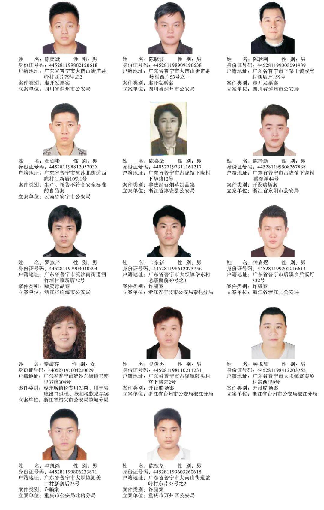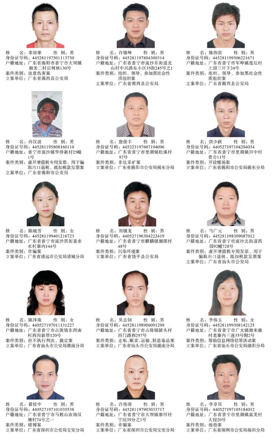 为深人贯彻落实上级公安机关岁末年初安保维稳工作部署要求,全力以赴消除社会安全隐患,切实保障广大群众合法权益,严厉打击各类违法犯罪活动,依法惩治犯罪,确保普宁市社会治安持续稳定。根据《中华人民共和国刑法》《中华人民共和国刑事诉讼法》等有关规定。普宁市公安局决定对普宁市户籍逃犯和普宁市公安机关立案在逃人员予以公开悬赏通缉,并敦促在逃人员到公安机关投案自首,争取依法从宽处理。同时希望广大群众积极提供在逃人员线索,凡在2023年1月29日至6月30日期间,提供线索并协助普宁市公安局抓获下列逃犯的,每抓获一名普宁市公安机关立案在逃人员,公安机关将给予5千元人民币的奖励,每抓获一名外地立案的普宁户籍逃犯的,公安机关将给予2千元人民币的奖励,并对举报人信息严格保密。对窝藏包庇在逃人员的,将依法追究法律责任;对打击报复举报人的,将依法从严惩处。