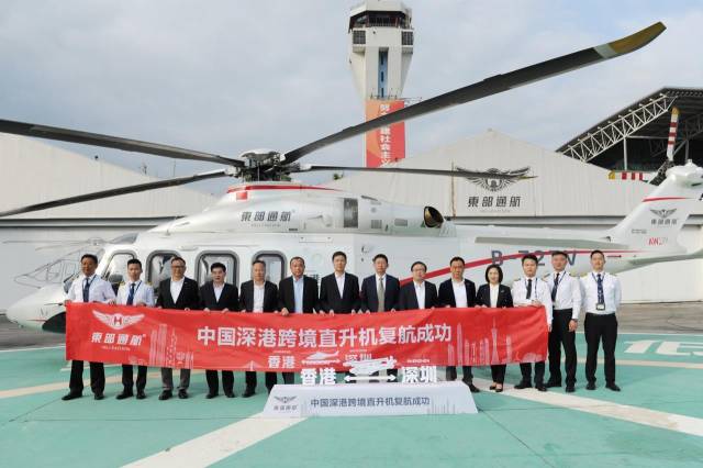 2月8日,深港直升机跨境飞行复航仪式在东部通航宝安机场基地举行。深圳市交通运输局副局长张志锋宣布了深港直升机跨境飞行复航。随后,一架东部通航空客135直升机从深圳宝安国际机场起飞,经过15分钟的飞行,平稳降落在香港国际机场的商用航空中心 (HKBAC)。