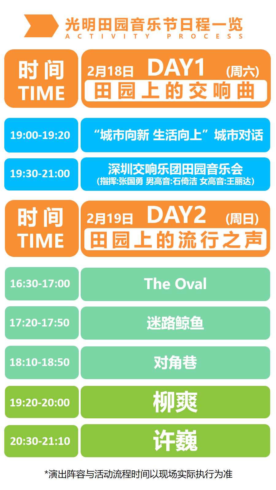 光明田园音乐节将邀请深圳知名主持人与光明区领导、特邀艺术家、科学家等做客田园之上,以互动访谈的形式介绍光明科学城发展及规划。