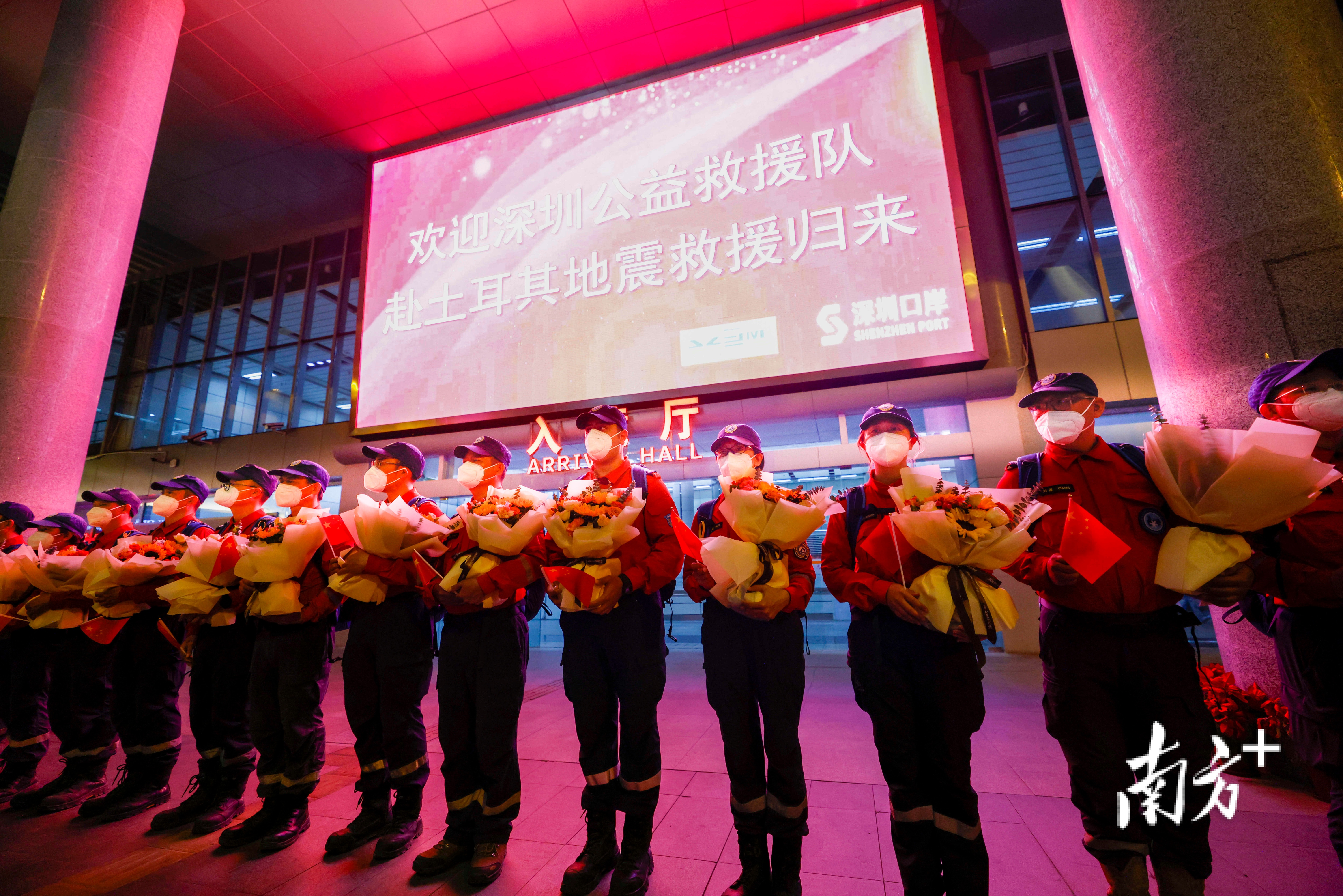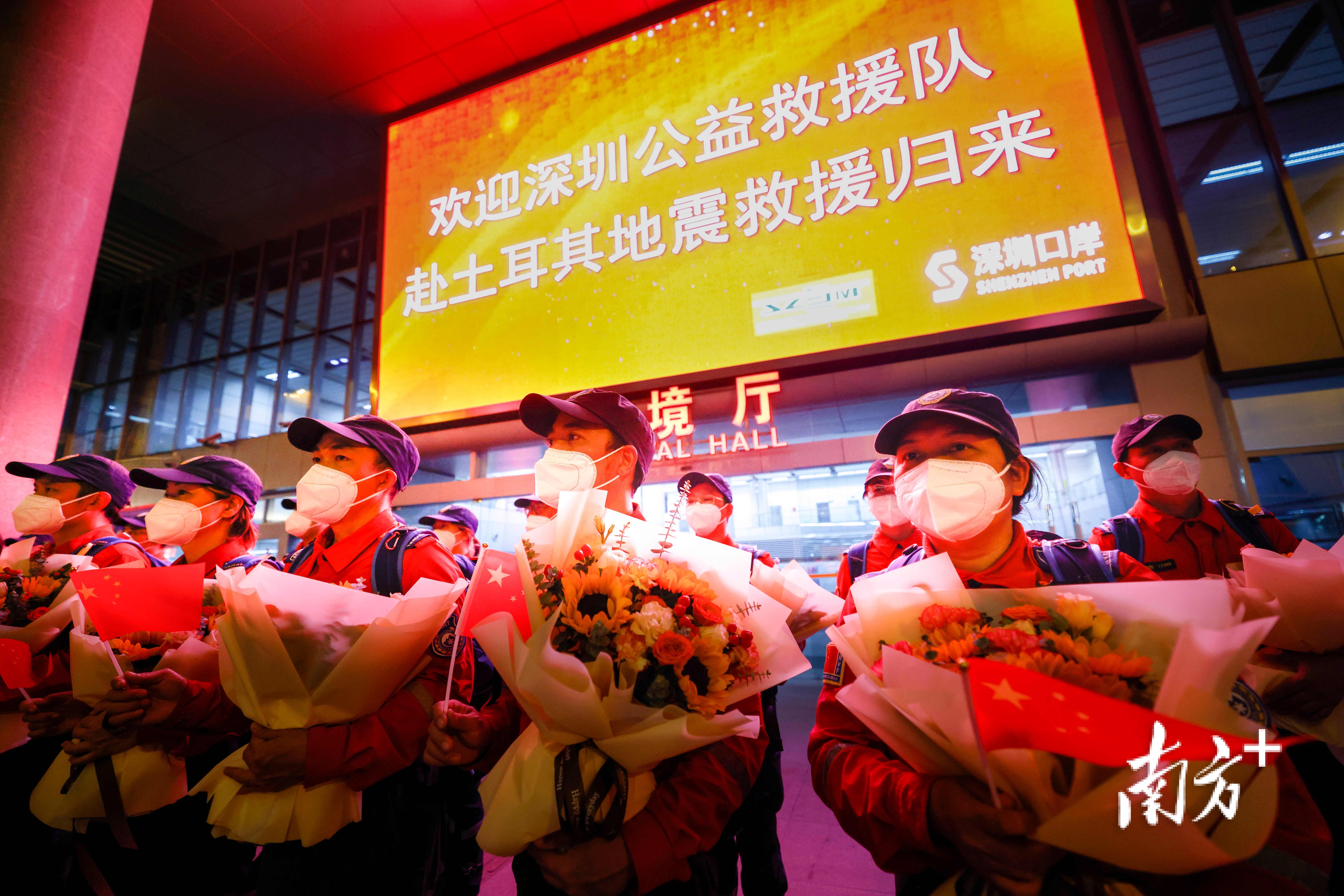 鲜花旗帜、夹道欢迎……2月19日,在赴土耳其参与地震救灾行动并圆满完成任务后,深圳市公益救援队22名队员平安归来,结束了为期11天的灾区救援工作。