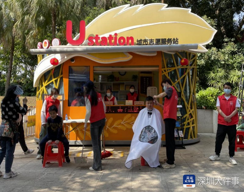 莲花山公园U站采取义剪的方式来让雷锋精神引领社会风尚,志愿者邀请理发师为来往的市民理发。莲花山公园U站志愿者大力弘扬的“奉献、友爱、互助、进步”的志愿精神得到了市民朋友们的高度认可,活动现场热火朝天。