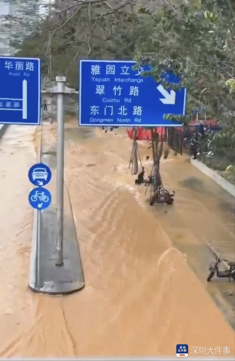 当天上午,深圳交警、深圳水务集团发布消息称,14日上午10时,罗湖区爱国路水库新村路段有一DN1000供水管爆裂,导致双方向路面积水。