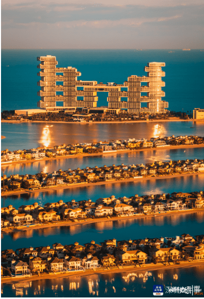 “那天,光芒万丈的日出金光倾洒在迪拜棕榈岛上,皇家亚特兰蒂斯酒店幕墙上反射的阳光点亮了如镜面般的海面。前景棕榈叶般分布的别墅与远处造型奇特的皇家亚特兰蒂斯酒店所构成的整个画面像极了电影《楚门的世界》中的场景。”吉子轩捕捉到了这流光溢彩、金碧辉煌的一幕。