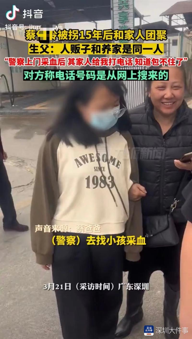 蔡先生介绍,3月18日,他接到警方的电话,说经过人像识别和DNA比对,确认了女儿的身份,随后,蔡某玲在四川被警方找到。3月20日,在深圳警方的帮助下,蔡某玲和家人在深圳终于团聚。