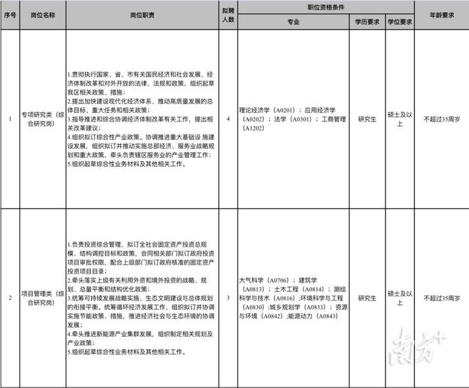 其中,招聘专项研究类(综合研究岗)4名、项目管理类(综合研究岗)3名。特聘人员实行协议年薪包干制,具体按照福田区特聘人员相关管理办法及用人单位有关规定执行。