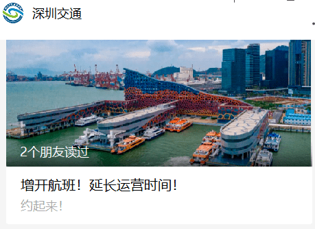 从深圳蛇口出发的新增航班时刻为:18:00、19:00、20:15。