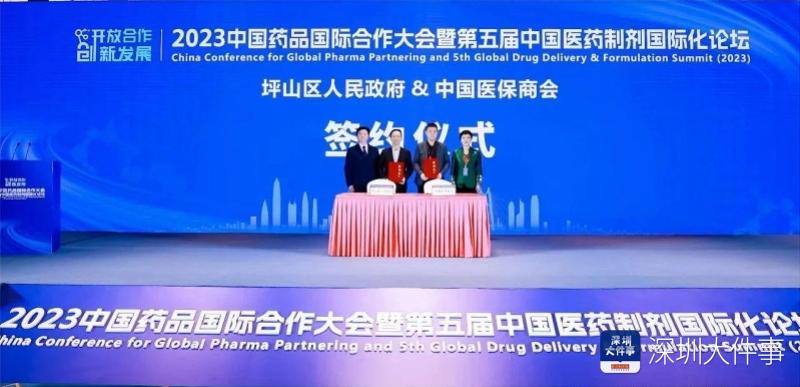 在本次大会上,坪山区政府与中国医药保健品进出口商会(简称“医保商会”)达成战略合作协议并举行了签约仪式。未来,双方将发挥各自的职能优势,帮助企业开拓国际市场,加快推进生物医药和大健康产业的发展。医保商会将为坪山企业提供最新的国内外医药政策法规、新药研发、医疗器械研发设计、注册认证、健康保健等相关信息和咨询服务,并组织坪山企业开展重大医药国际合作交流活动,指导和帮助坪山医药企业开展国际化经营。同时,五年内医保商会将坪山区作为“中国药品国际合作大会暨中国医药制剂国际化论坛”主要举办地。