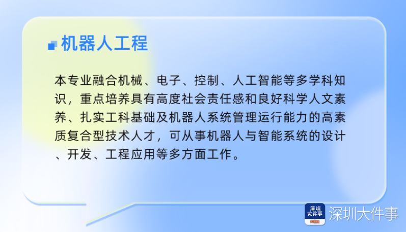 近日,教育部公布了2022年度普通高等学校本科专业备案和审批结果。深圳技术大学2022年度申请增设的机器人工程、智能感知工程、生物制药、口腔医学技术、音乐表演、新媒体艺术6个专业获得教育部批准。