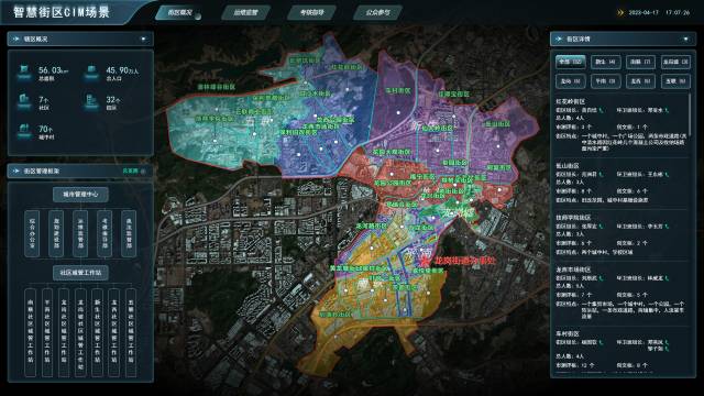 龙岗街道智慧街区CIM场景中的街区概况。