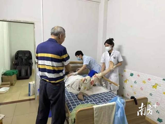 据了解,此次提供服务的是家住光明街道清怡小区的陈奶奶,今年63岁,因脑出血后常年瘫痪。其家属通过社区宣传了解到家庭养老床位服务相关政策,便在社区的帮助下为陈奶奶申请了家庭养老床位服务。
